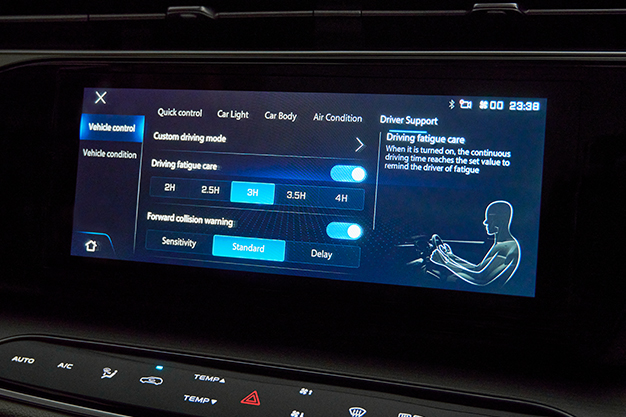 Personalize settings of • Custom drive mode • Driver fatigue monitoring • Forward collision warning • Automatic Emergency Braking
