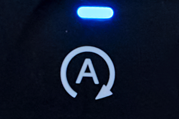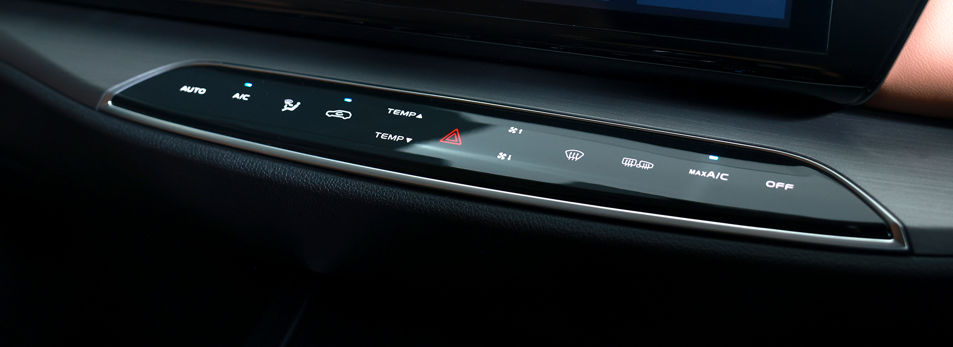 The chic climate control panel with a touch of high gloss lacquer controls the AC including blower speed and temperature controls.