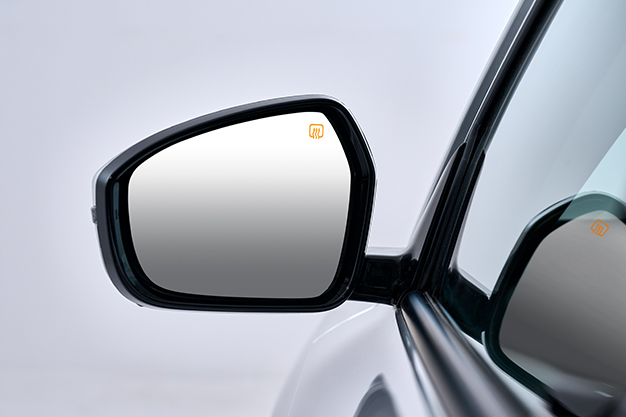 The powered side view mirrors are incorporated with turn signal, blind spot cameras and heating plates.